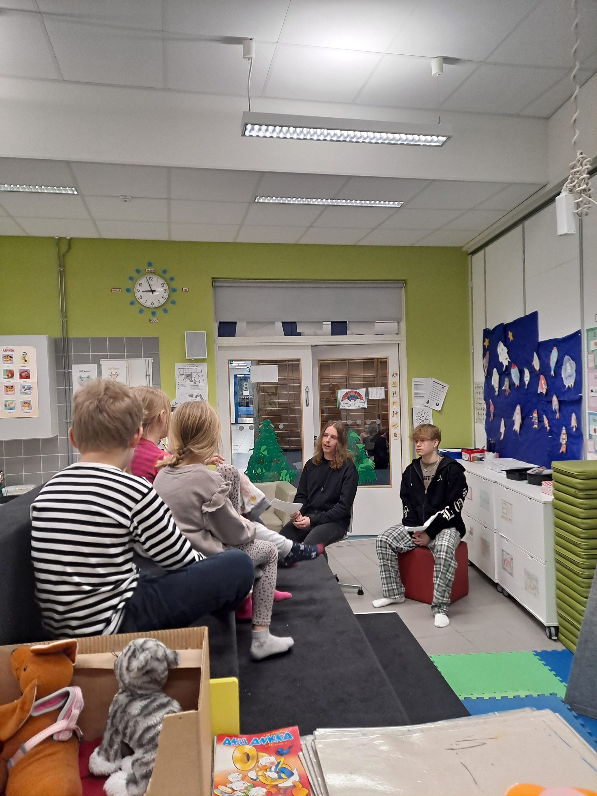 Tekstejä minun maailmastani –opintojakson opiskelijat toteuttivat tammikuussa satuprojektin, jonka huipentumana ryhmä vieraili lukemassa itse kirjoittamiaan satuja Siilinlahden 1C-luokalle.