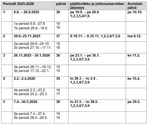 5.2 Periodit, päättöviikot ja arviointipäivät